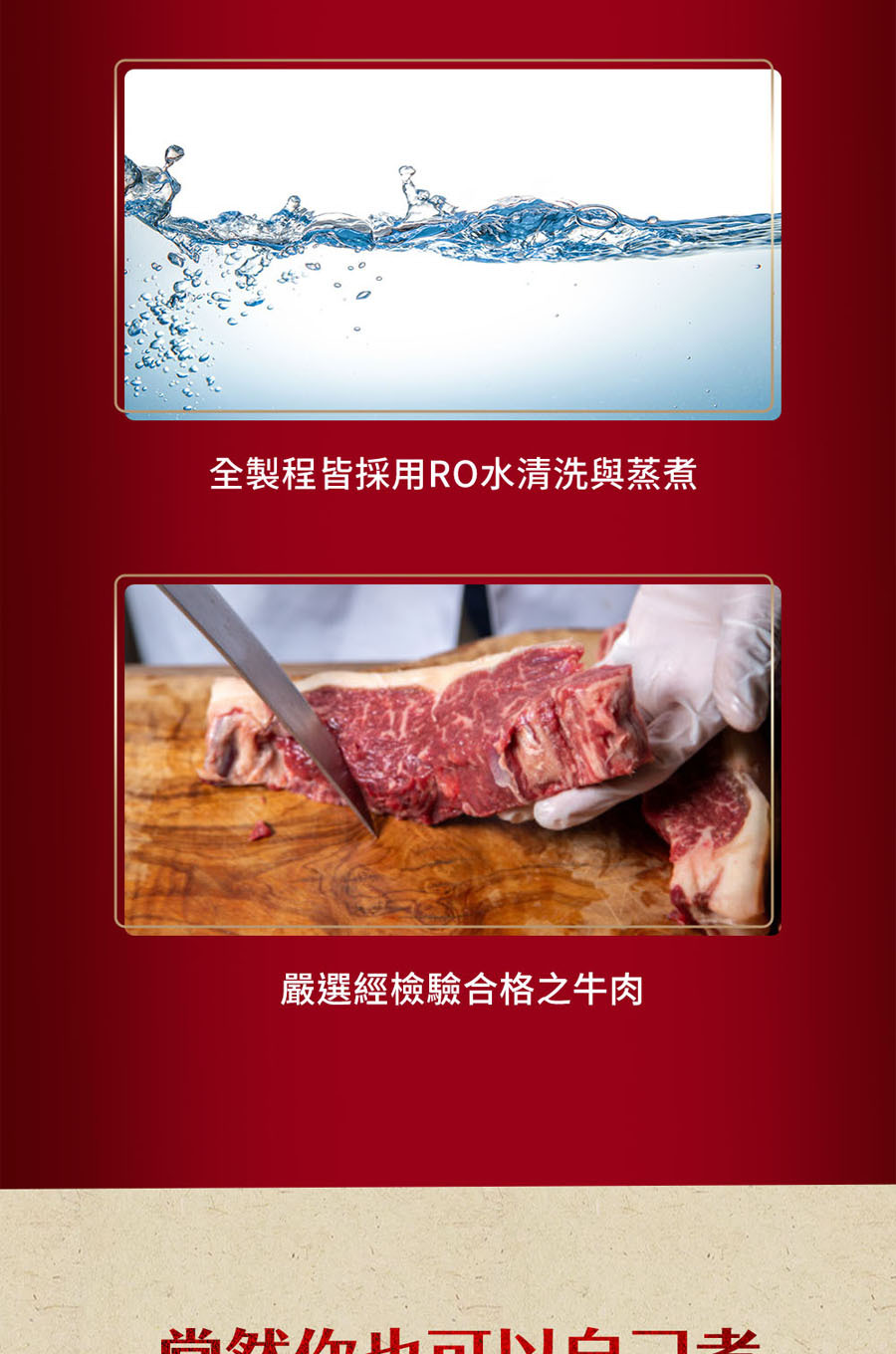食材:滴雞精、米、牛肉(產地:澳洲、巴拉圭)、雞肉、地瓜、紅蘿蔔、紅椒、番茄、高麗菜、蘋果