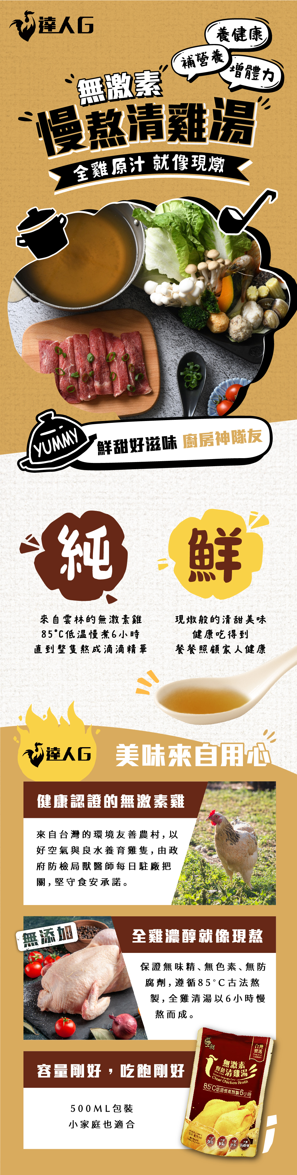 ✓ 嚴選無激素全雞,以85°C低溫熬煮6小時,濃縮全雞精華