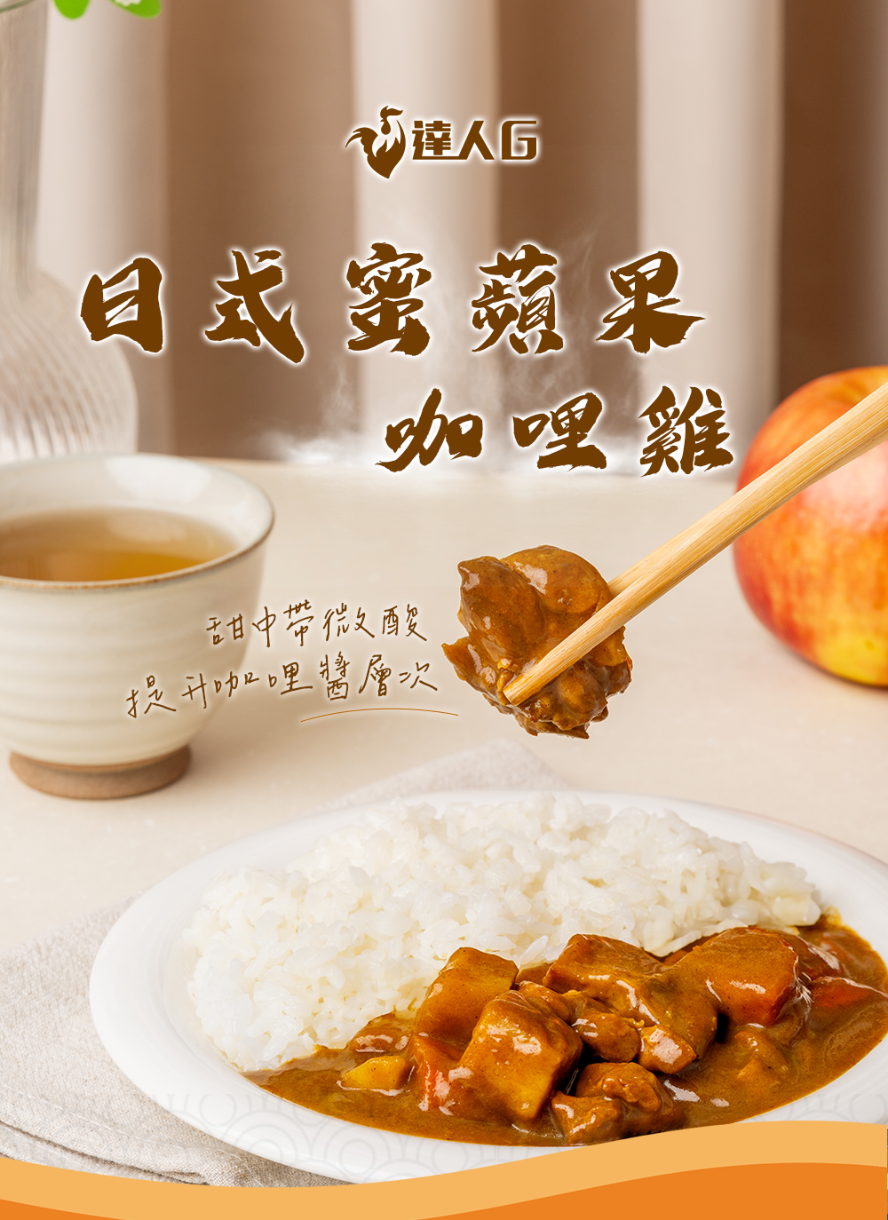 嚴選鮮嫩雞腿肉,搭配日式蜜蘋果咖哩醬,香甜溫和超下飯!