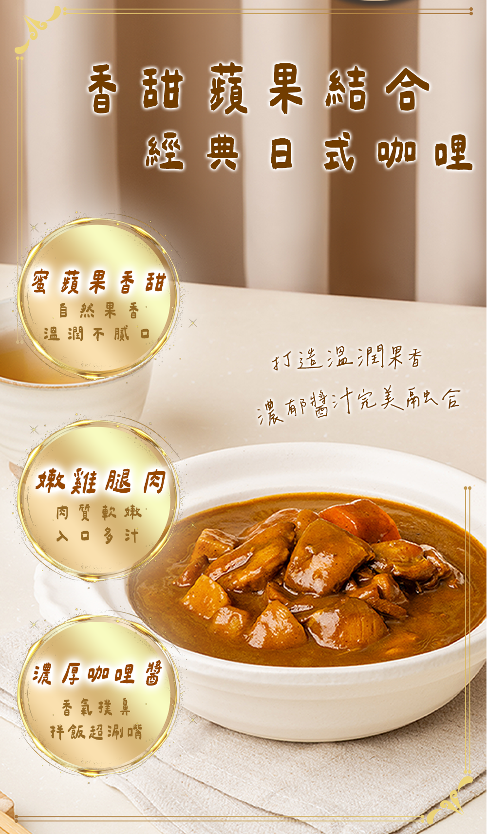 ✓ 經典日式風味,蘋果的清甜中和咖哩的甜香,溫順可口